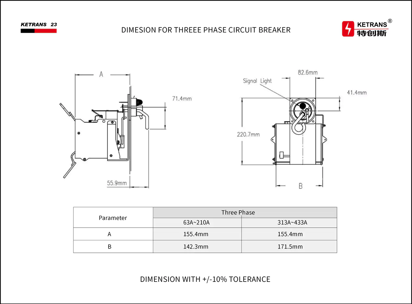 | For Transformer | 100KVA/112.5KVA |