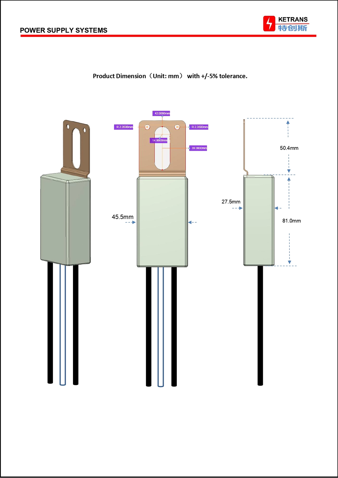 | Insulation Material | Epoxyresin 25KV/mm -40°C~+ 160°C | |