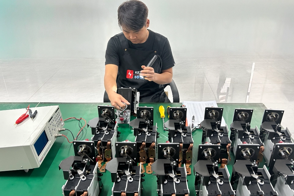 KETRANS Electric has a dedicated team responsible for overseeing process testing throughout the production process. Before final assembly, QC checks a series of components to ensure they are up to standard: whether the temperature control screw is broken or deformed, whether the contacts are smooth and free of bubbles, whether the transmission mechanism opens smoothly, and whether the double-metal welds are straight, etc. Only after all parts have passed inspection can the product proceed to the next assembly stage.